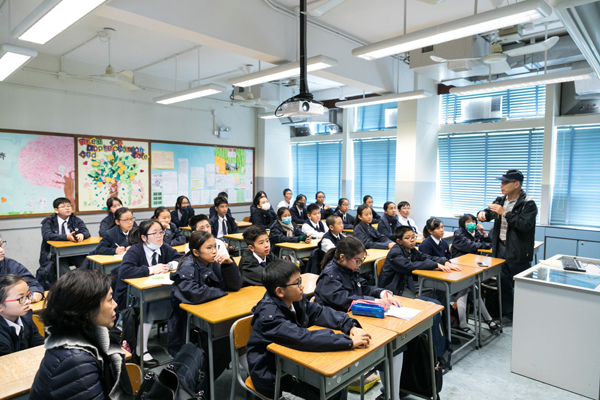 葉偉彰教授(站立者)在學校向同學介紹節日文化與茶粿的關係。