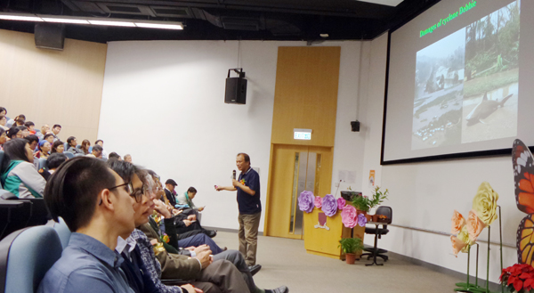 徐堉峰教授(站立者)指出,溫室效應引致颱風頻生,更多的超級風暴。