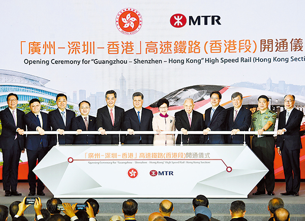一眾嘉賓主持廣深港高鐵香港段開通儀式。