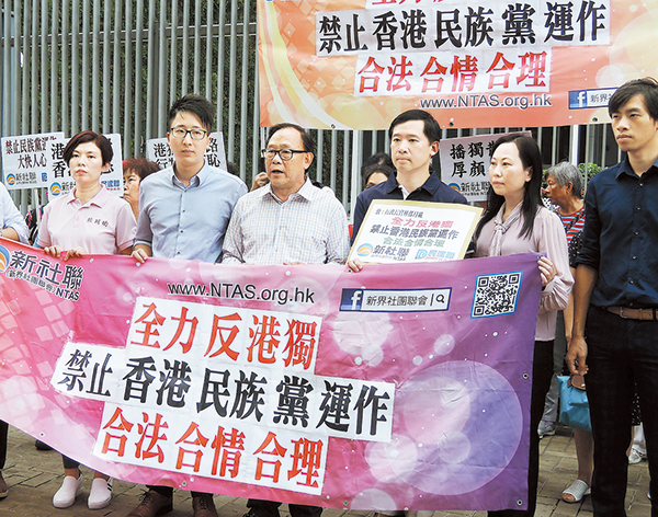 7月17日,基於國家安全及公共安全,保安局局長根據《社團條例》第8條行使權力,禁止宣揚「港獨」的「香港民族黨」運作及宣布其為非法社團。保安局曾數度延期讓「民族黨」作書面申述,「民族黨」召集人陳浩天於限期結束(9月14日)當晚提交申述。政府最終在9月24日刊憲,將其列為非法組織,即時禁止運作。