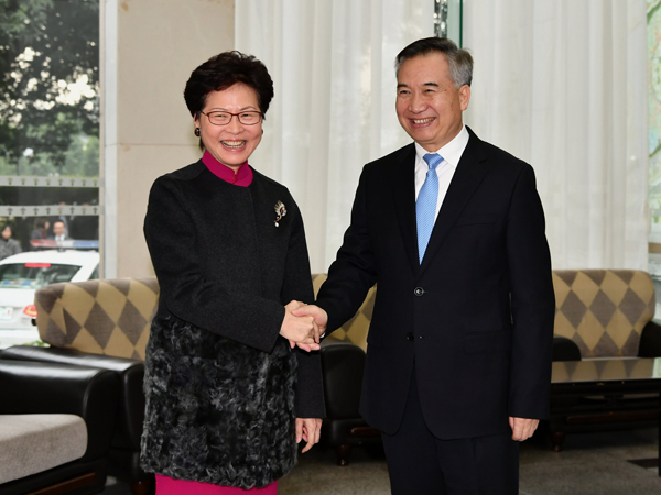 林鄭月娥在會晤時指,2018年是粵港澳大灣區建設開局非常成功的一年。去年,她與李希書記有過3次會晤,分別在北京、廣州和香港。她表示,與廣東省委書記如此緊密商談事務,可能是前所未有的。她十分感謝廣東省領導對粵港合作和粵港澳大灣區建設的支持。