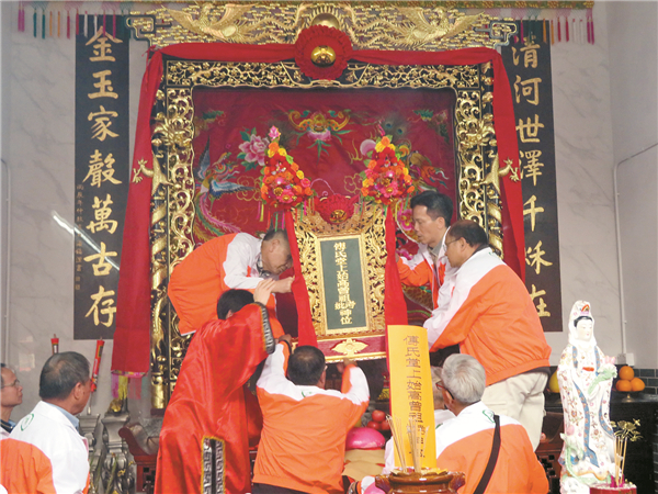 【香港商報网訊】記者鄭玉君報道:原在荃灣清快塘的傅氏宗祠自坍塌後,在深井建立亦已42載,但亦因時日耗損,神樓殘破,壁畫剝落頗多,樑柱蟲蛀厲害,後人恐其崩頹,去年7月開始重修,歷時半載竣工,於本月19日舉行重光典禮、進伙儀式,晚上設80席盆菜宴慶賀。