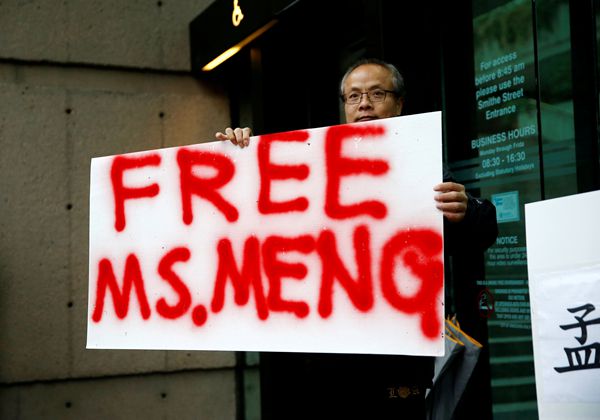 去年12月,加拿大当地华人在加拿大最高法院外声援孟晚舟。路透社