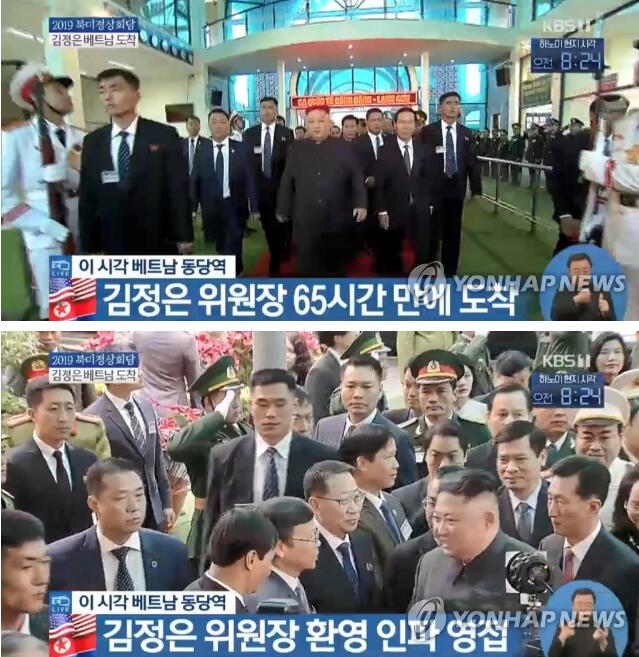 越南方面在火车站为金正恩举行了盛大的欢迎仪式。金正恩走下列车后,同越南官员握手致意。众多民众手举越南朝鲜国旗欢呼。随后,金正恩乘坐专车前往河内。他在车上还向窗外挥手致意。