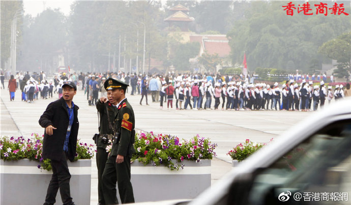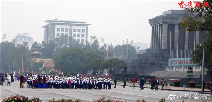 早上8時許,在主席府旁邊的胡志明紀念堂外,大批學生和遊人如常參觀。