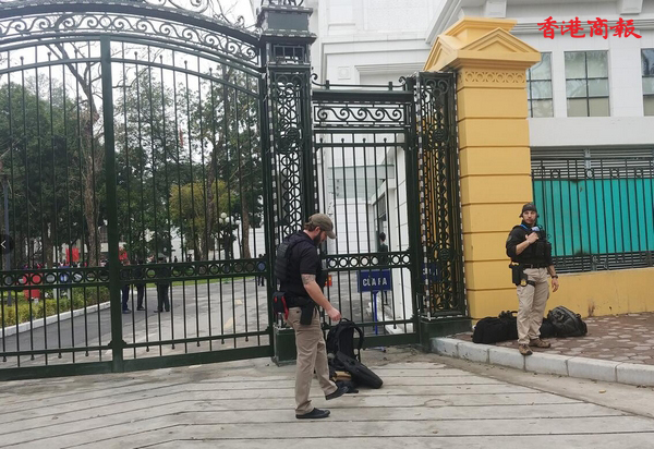 2名美國警察在越南政府總部外,與越南人員一同負責保安。