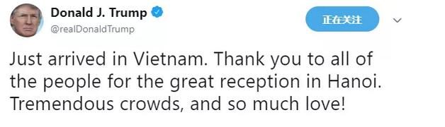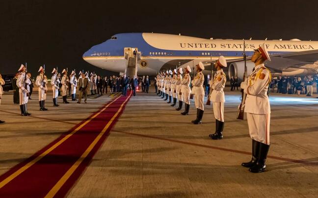 北京时间2月26日22点,川谱总统称空军一号抵达越南河内。