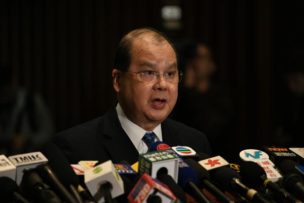 張建宗希望立法會及早通過撥款議案,讓利民惠民措施早日落實。 記者 蔡啟文攝