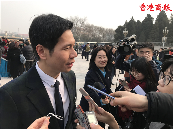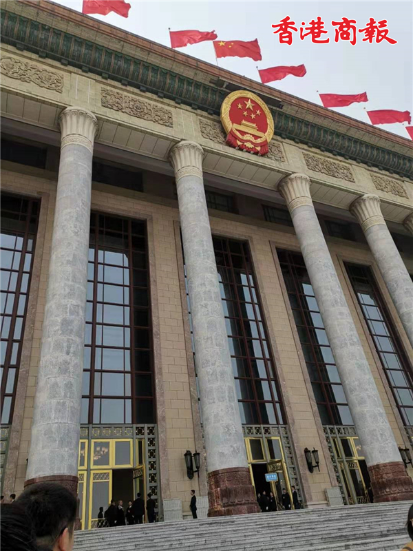 港區全國政協委員樓家強、霍啟剛在人民大會堂前自拍。
