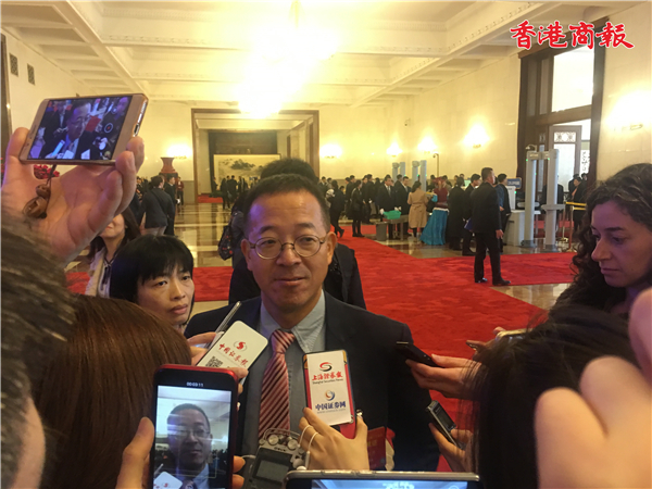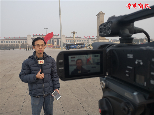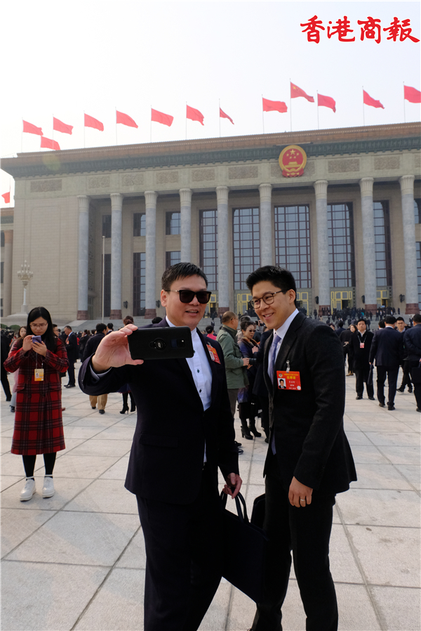 港區全國政協委員樓家強、霍啟剛在人民大會堂前自拍。