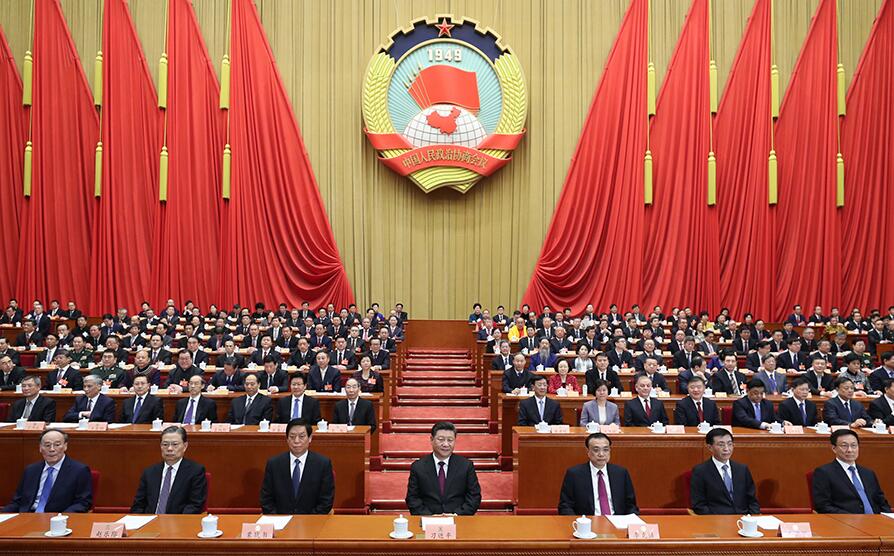 3月3日,中国人民政治协商会议第十三届全国委员会第二次会议在北京人民大会堂开幕。这是习近平、李克强、栗战书、王沪宁、赵乐际、韩正、王岐山在主席台就座。 新华社