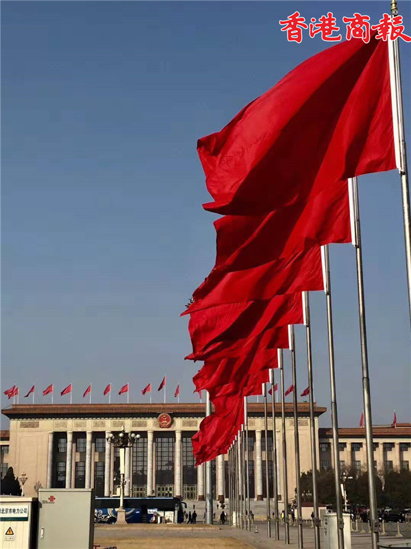 红旗映衬下的人民大会堂,这个角度看过去是不是特别靓!