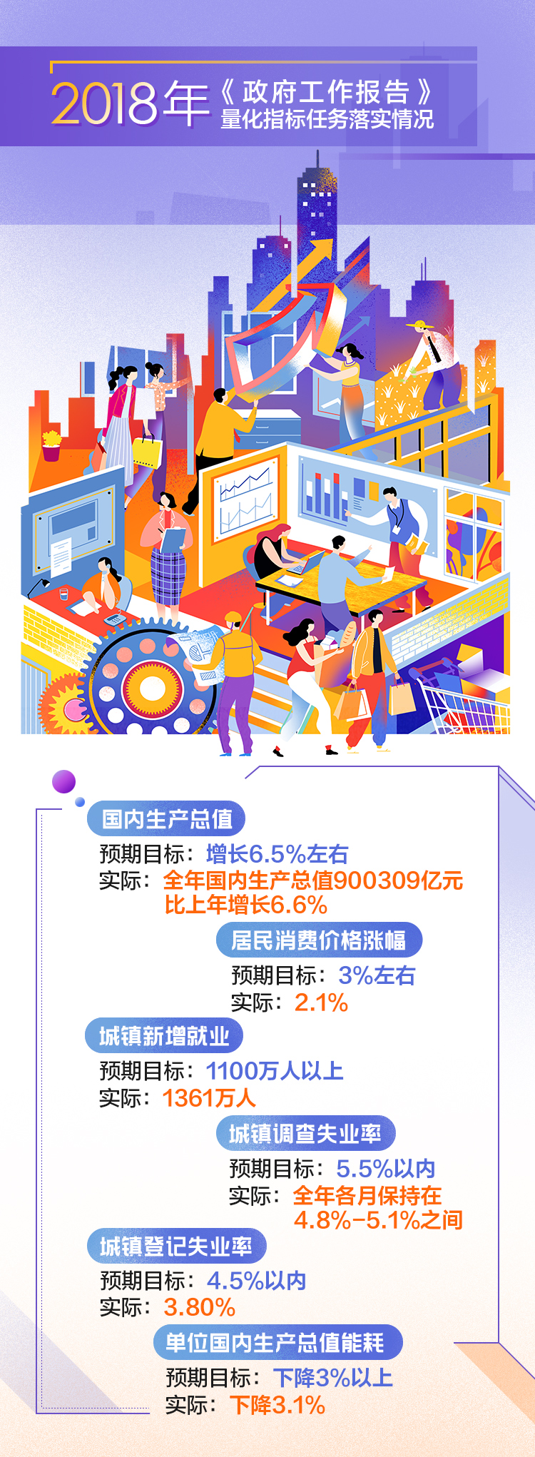 城镇新增就业1100万人以上,调查失业率5.5%左右,登记失业率4.5%以内。