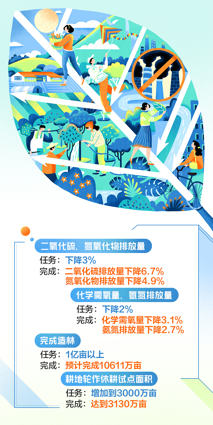污染防治:二氧化硫、氮氧化物排放量下降3%,化学需氧量、氨氮排放量下降2%。
