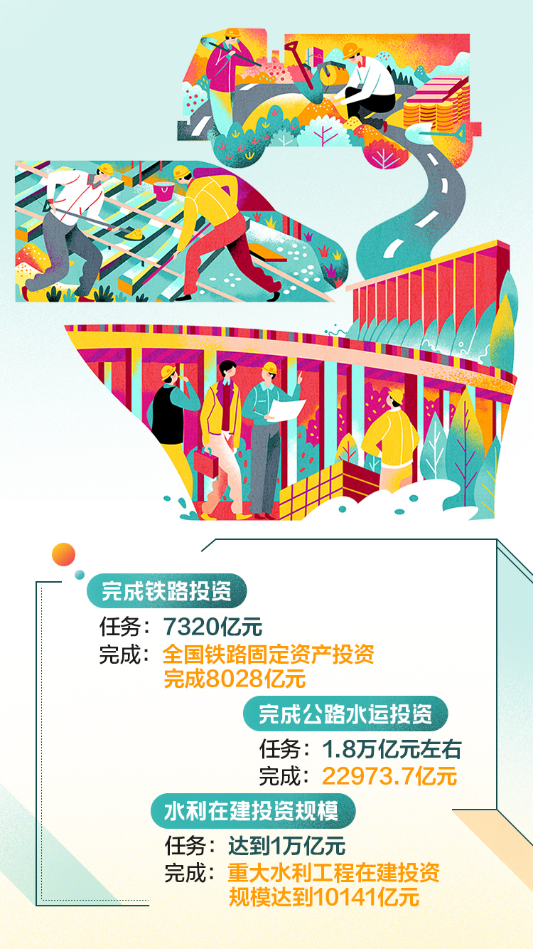 投资:完成铁路投资8000亿元、公路水运投资1.8万亿元。