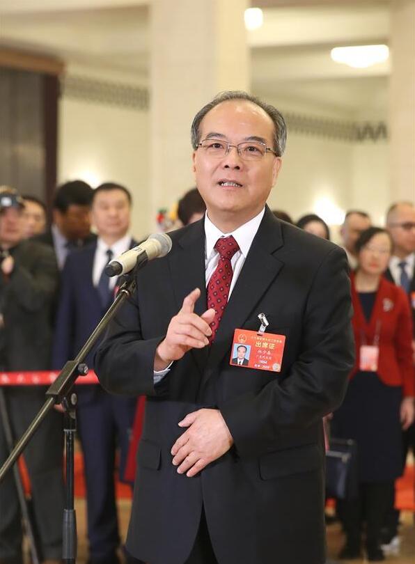 3月5日,第十三届全国人民代表大会第二次会议在北京人民大会堂开幕。这是全国人大代表林少春在“代表通道”接受采访。 新华社