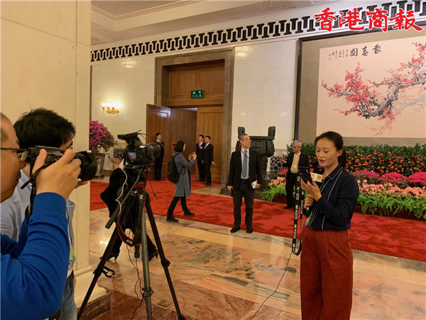 商报记者小丫大会堂工作照,唐英年“抢镜”