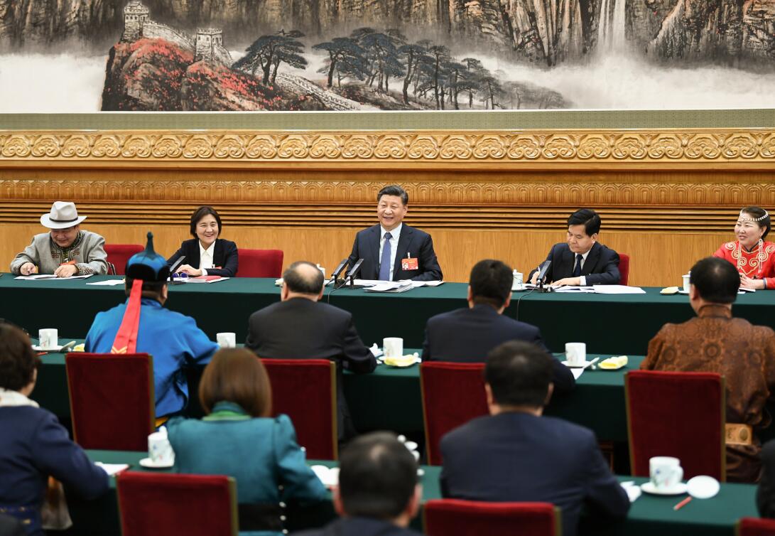 習近平主席昨日下午參加他所在的十三屆全國人大二次會議內蒙古代表團審議。 新華社
