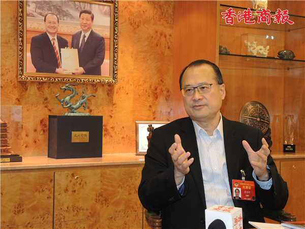 【香港商报网讯】记者林彬彬、张宇、杨凌云报道:6日,在全国两会进行的第三天,记者来到香港新华集团北京办事处,对全国政协常委、香港中华总商会会长、香港新华集团主席蔡冠深先生进行全媒体专访,蔡冠深委员就推动粤港澳大湾区生态环境保护和产业发展,发挥香港现代服务业的强项,助力“一带一路”战略等话题进行了精彩的阐述。