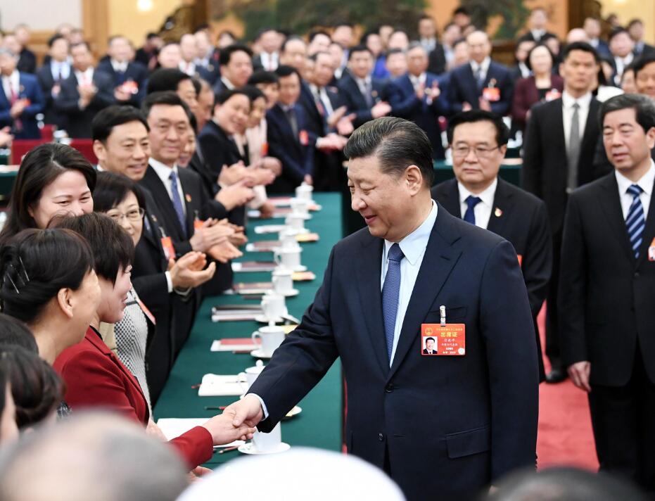 當天是「三八」國際勞動婦女節,習近平代表黨中央,向參加全國兩會的女代表、女委員、女工作人員,向全國各族各界婦女,致以節日的祝賀和美好的祝福。