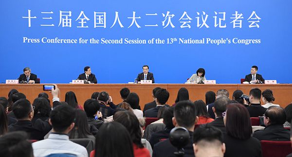 3月15日上午十三届全国人大二次会议闭幕后,国务院总理李克强在人民大会堂三楼金色大厅会见采访十三届全国人大二次会议的中外记者并回答记者提出的问题。