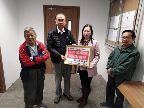 社區幹事林慧明(右二)聯同住戶代表向管理處遞交申訴信。