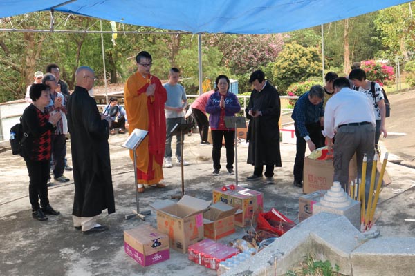 由於義塚是由佛堂經手建造,所以普慶念佛社每年都會在清明節期間組織會友拜祭,掃墓時除了一般祭祀用的果品幣帛,他們還安排多名經師誦經,即場用潮語做一堂「小蒙山施食」,如此約花一個多小時,待眾人分享帶來的午餐後,便乘車離去。