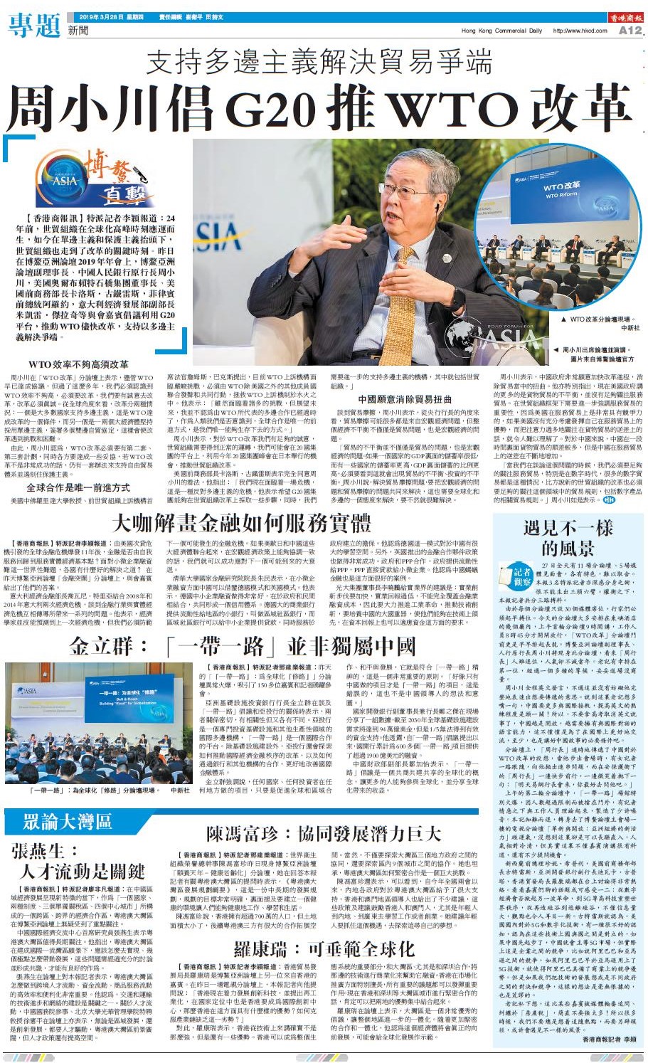 【香港商報网訊】特派記者李穎、鄧建樂、廖非凡報道:24年前,世貿組織在全球化高峰時刻應運而生,如今在單邊主義和保護主義抬頭下,世貿組織也走到了改革的關鍵時刻。昨日在博鰲亞洲論壇2019年年會上,博鰲亞洲論壇副理事長、中國人民銀行原行長周小川,美國奧爾布賴特石橋集團董事長、美國前商務部長卡洛斯·古鐵雷斯,菲律賓前總統阿羅約,意大利經濟發展部副部長米凱雷?傑拉奇等與會嘉賓倡議利用G20平台,推動WTO儘快改革,支持以多邊主義解決爭端。