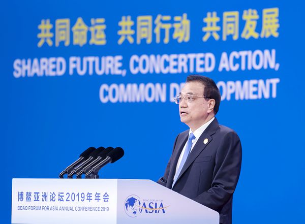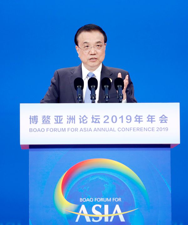 3月28日上午,中国国务院总理李克强在海南博鳌出席博鳌亚洲论坛2019年年会开幕式,并发表题为《携手应对挑战 实现共同发展》的主旨演讲。中新社