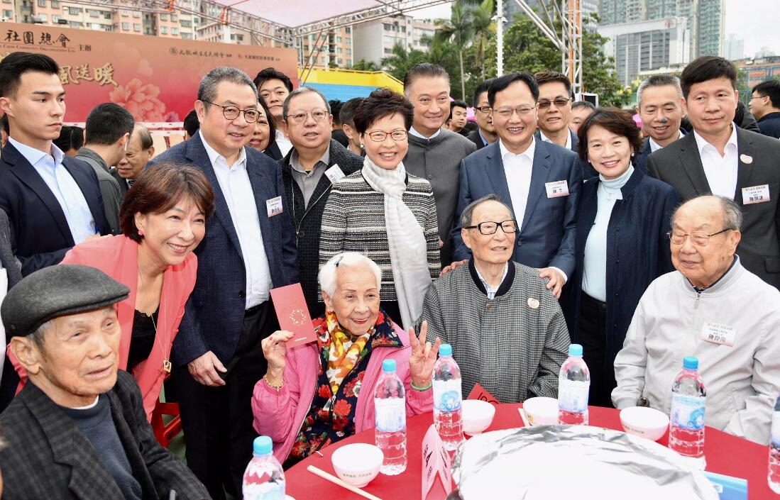 行政長官林鄭月娥、中聯辦副主任陳冬等昨日出席香港潮屬社團總會舉辦的「萬人盆菜 春風送暖」啟動儀式。政府新聞處