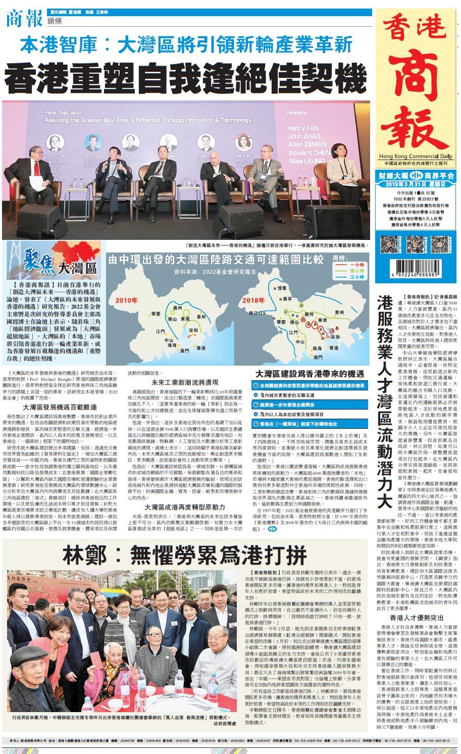 【香港商報网訊】日前在港舉行的「創造大灣區未來--香港的機遇」論壇,發表了《大灣區的未來發展與香港的機遇》研究報告。2022基金會主席暨是次研究的督導委員會主席馮國經博士在論壇上表示,隨着珠三角「地區經濟龍頭」發展成為「大灣區超級地區」,大灣區的「本地」市場將引領香港進行新一輪產業革新,成為香港發展百載難逢的機遇和「重塑自我」的絕佳契機。