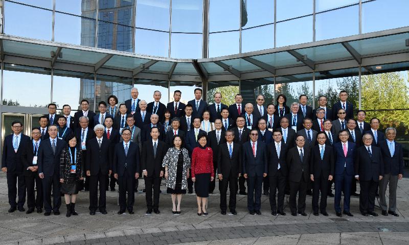 林鄭月娥(前排中)和代表團成員在出席會議前合照。圖:政府新聞處