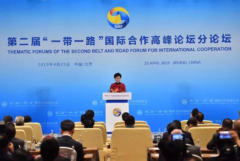 行政长官林郑月娥4月25日在北京第二届「一带一路」国际合作高峰论坛地方合作分论坛上致辞时表示,深信香港的众多独特优势有利香港在「一带一路」建设中发挥促进国际和地方合作的重要角色。香港已做好准备,积极参与「一带一路」建设,期待共同合作,一起向包容、可持续发展的目标前进。