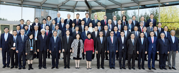 林鄭月娥(前排中)和香港代表團成員在出席會議前合照。政府新聞處
