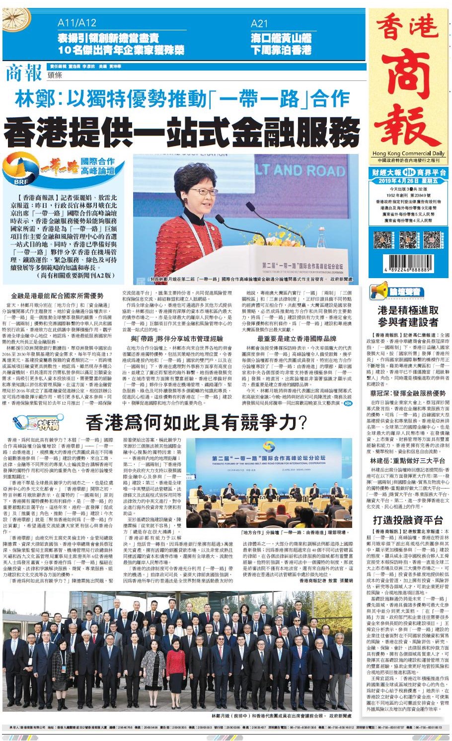 在昨日論壇企業家大會上,蔡冠深於開幕式發言指,香港在金融和專業服務方面的優勢,可為「一帶一路」沿線國家大型基建提供資金和專業服務。香港是亞洲排名第一、全球第三的國際金融中心,也是全球最大的離岸人民幣市場,在發債融資、上市集資、財務管理等方面具有豐富經驗和能力。香港更擁有完善的法律制度、簡單稅制、資金和信息自由流動。