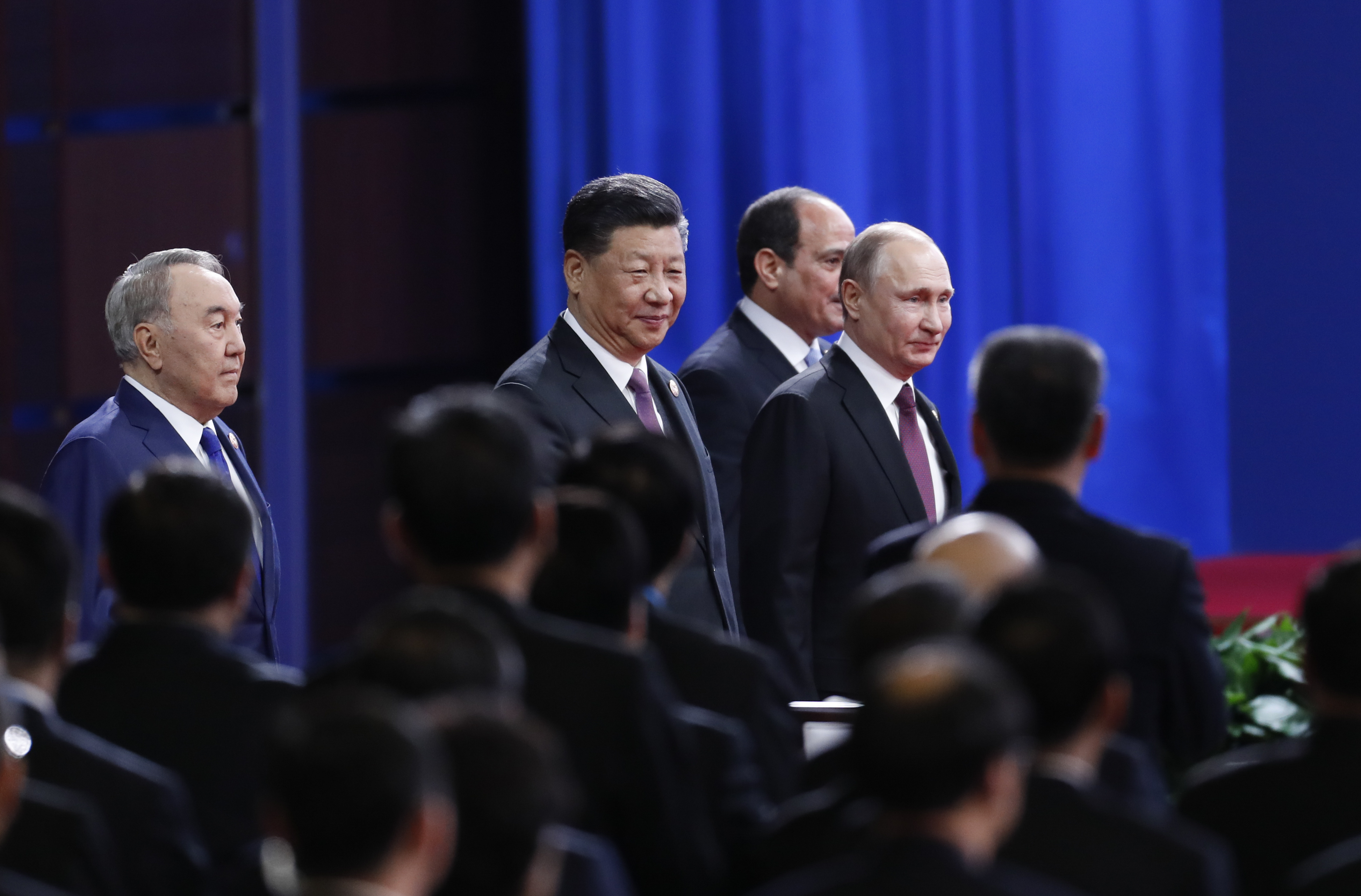 4月26日,国家主席习近平在北京出席第二届“一带一路”国际合作高峰论坛开幕式,并发表题为《齐心开创共建“一带一路”美好未来》的主旨演讲。这是习近平和出席开幕式的外方领导人共同步入会场。 新华社