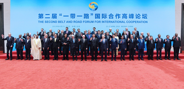 昨日,國家主席習近平同出席第二屆「一帶一路」國際合作高峰論壇圓桌峰會領導人和國際組織負責人集體合影。新華社