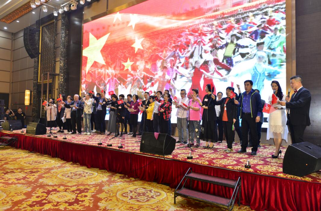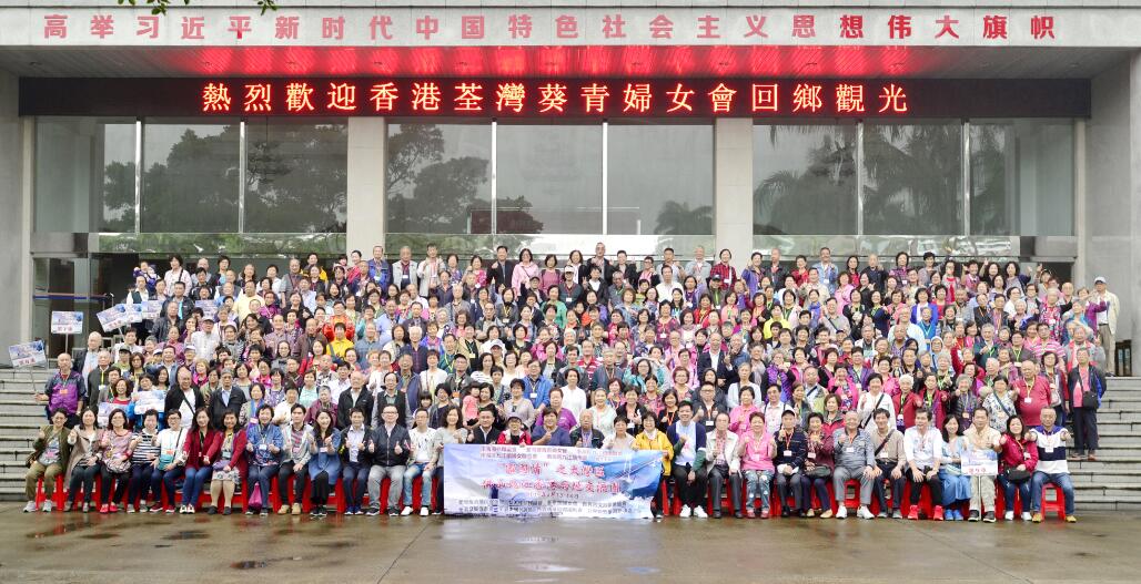 荃灣葵青區婦女會與新界12個團體共計400名會員及義工,參加「家國情」之大灣區佛山九江、香港兩地文化交流團於九江鎮合照。记者周骏摄
