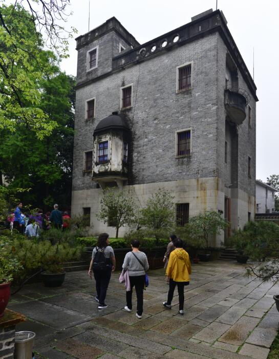 青石、青磚為主體結構,牆身設計歐式圓拱飄窗露台的九江鎮吳家大院碉樓。