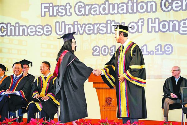 專家指,如果香港和內地學校在大灣區合作辦學,將創造更多機會,滿足大灣區人才需求。圖為港中大(深圳)首屆畢業典禮。中新社