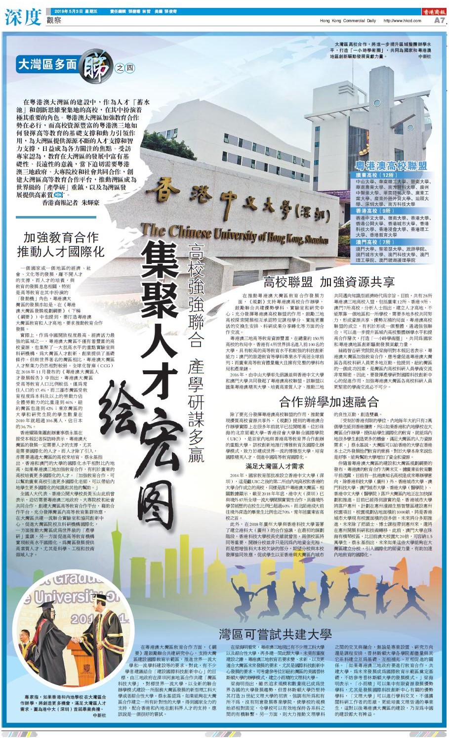 在粵港澳大灣區教育合作方面,《綱要》還鼓勵聯合共建研究中心,支持大灣區建設國際教育示範區,推進世界一流大學和一流學科建設等的要求。對此,有不少學者建議結合「建設國際科技創新中心」的目標,由三地政府在深圳河套地區合作共建「灣區科技大學」,對標世界一流大學,以全新的聯合辦學模式建設一所服務大灣區發展的新型理工科大學或者綜合性大學。蔡永基認為,如果能夠在大灣區合作建立一所有針對性的大學,得到國家全力的支持,配合香港和內地在創科界人才的支持,應該說是一個很好的嘗試。