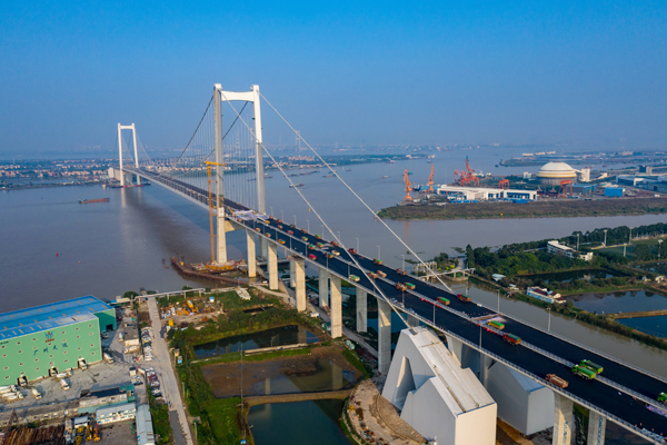 前海、南沙及橫琴3個自貿區已經成為粵港澳合作先導區,先行先試取得的成果和經驗,為下一步在整個大灣區推廣做好準備。圖為連接南沙自貿區與東莞的南沙大橋。 中新社
