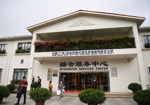 自貿區的建設,將為港澳創造更大的發展空間和腹地,也便利粵港澳資源流通。圖為橫琴自貿區綜合服務中心。 新華社