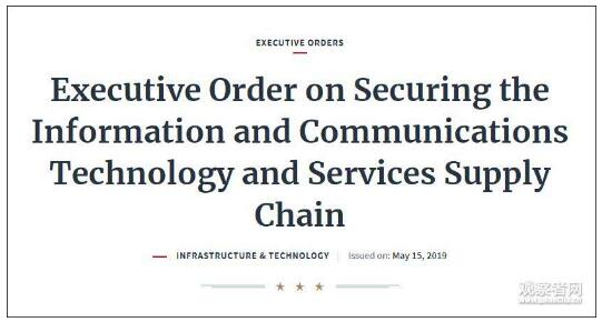 美国总统特朗普签署行政令,以“科技网络安全”为由,要求美国进入紧急状态,并向美国商务部赋权,允许后者禁止美国公司购买“外国敌人”生产的电信设备、技术。此举被美媒视为,为禁止美企与华为的业务往来铺平道路。