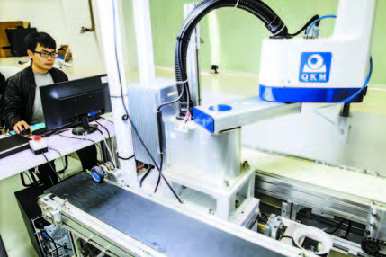 在拓斯達機器人總裝車間,一台畫像機器人引起了參觀者的注意。只需坐到指定的位置,根據指引操作,對面的機器人就會根據圖像,在紙上畫成像。據梁哲介紹,該機器人主要是公司在自動化與視覺技術結合方面的探索。