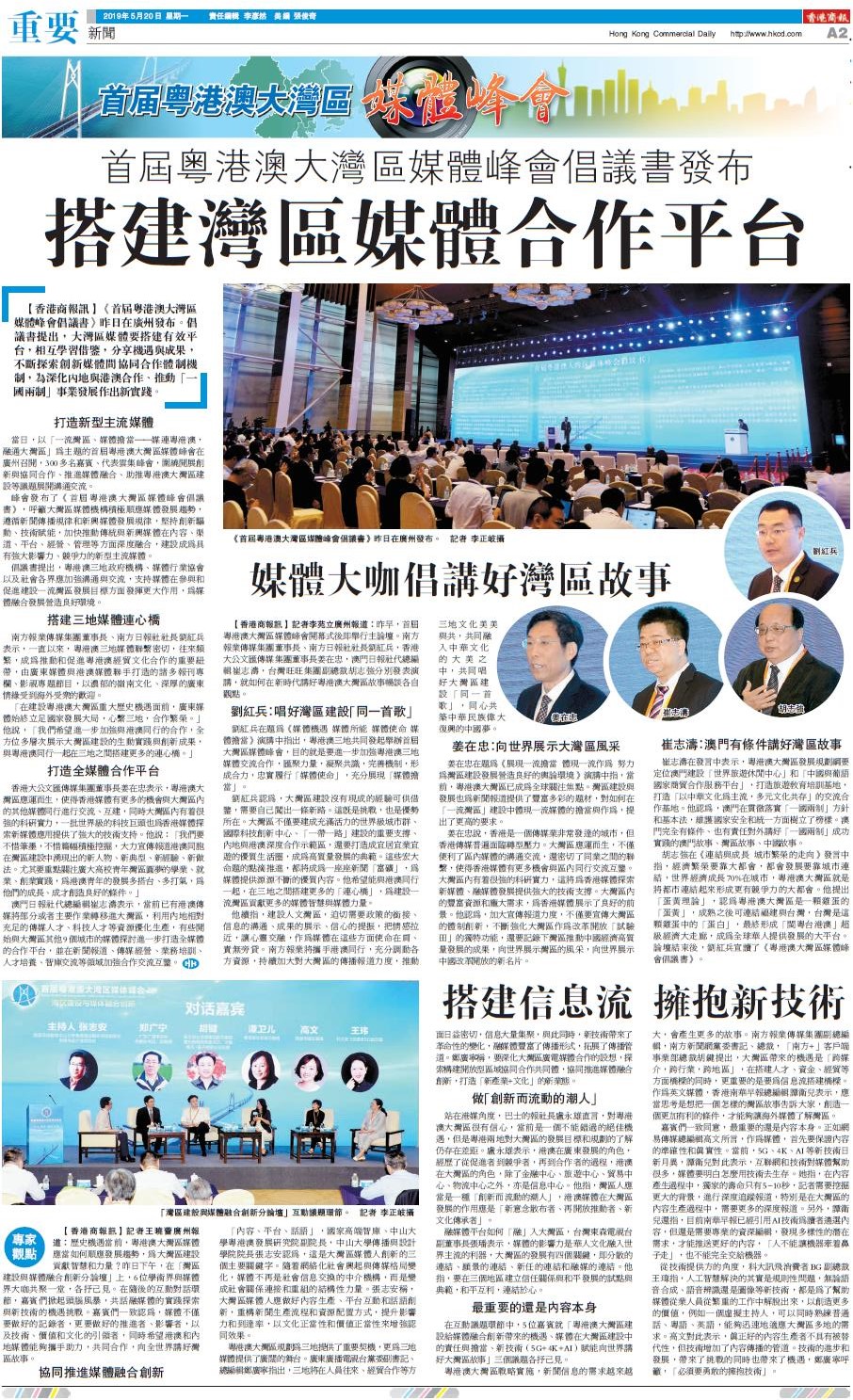 「在建設粵港澳大灣區重大歷史機遇面前,廣東媒體始終立足國家發展大局,心繫三地,合作繁榮。」他說,「我們希望進一步加強與港澳同行的合作,全方位多層次展示大灣區建設的生動實踐與創新成果,與粵港澳同行一起在三地之間搭建更多的連心橋。」