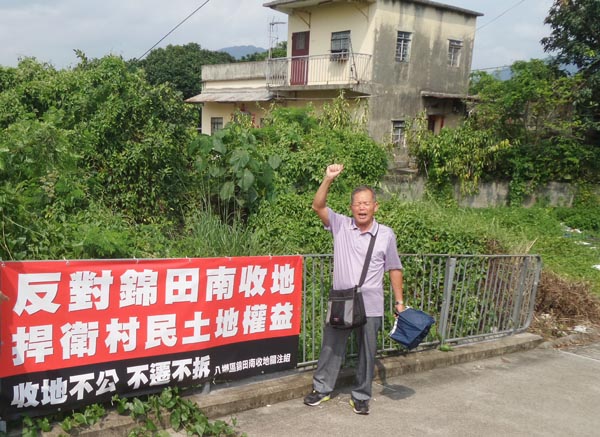 去年10月28日,政府將村界內10%的面積約3萬呎土地收回,限定在即將收回土地上的住戶於今年1月27日前搬走,當時,徐發堅村長統計受收地影響有100多戶,其中,有約60餘戶符合公屋條件而選擇「上樓」,另有40餘戶獲地主安置費搬出村,剩下20戶寮屋長者業主和租戶,2月22日地政總署收地刊憲,政府要求剩下20戶在3個月之內搬走,否則會狀告住戶霸佔官地。這批寮屋長者住戶和土地持份者表示,錦田南發展規劃從一開始就沒有向所有受收地影響的住戶諮詢過意見,更在收地前得知,豬舍、寮屋牌照在沒有通告之下被取消,令他們在居住土地被收回的同時,喪失賠償和安置。