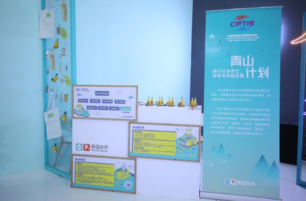 在展覽尾部,呈現以美團外賣為代表的美團點評到家業務。從企業社會責任的角度,講述美團外賣,乃至美團點評為社會多方面所做出的積極貢獻,所傳遞的正能量。其中,青山計劃是業內首個關注環境保護的行動規劃,在探索可持續發展方面做出多項創新。