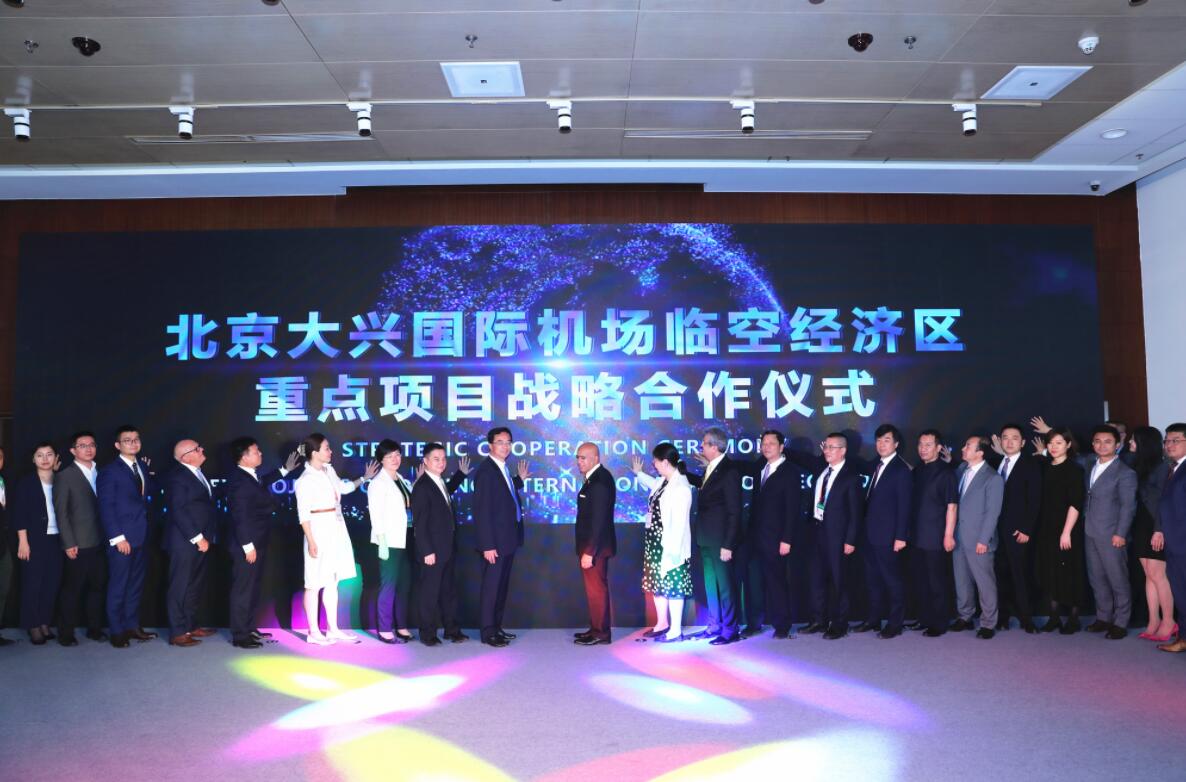 發佈會上,北京新航城控股有限公司與商務部投資促進事務局、迪拜伊瑪爾集團、德國漢諾威、廈門航空、中國金茂、順豐控股、同仁堂健康、波士頓諮詢、安永、戴德梁行、國泰創投、上海柒計、翰納仕等單位簽訂協議;大興區電商辦與世邦魏理仕、高力國際、盈科律師事務所、時尚控股集團等簽訂協議。