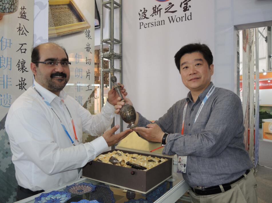 作為一帶一路上的重要國家,伊朗參展商代表兄弟傳奇國際貿易(北京)有限公司負責人MassoudShamaeezadeh告訴記者,「伊朗的手工藝品十分豐富,從幾千年前的傳統工藝到現代流行藝術,都能在伊朗琳琅滿目的藝術寶庫中找到。」在本屆京交會上帶來伊朗最流行的工藝包括波斯地毯、鏨刻、銅胎畫琺琅、骨木金切片等工藝製品。